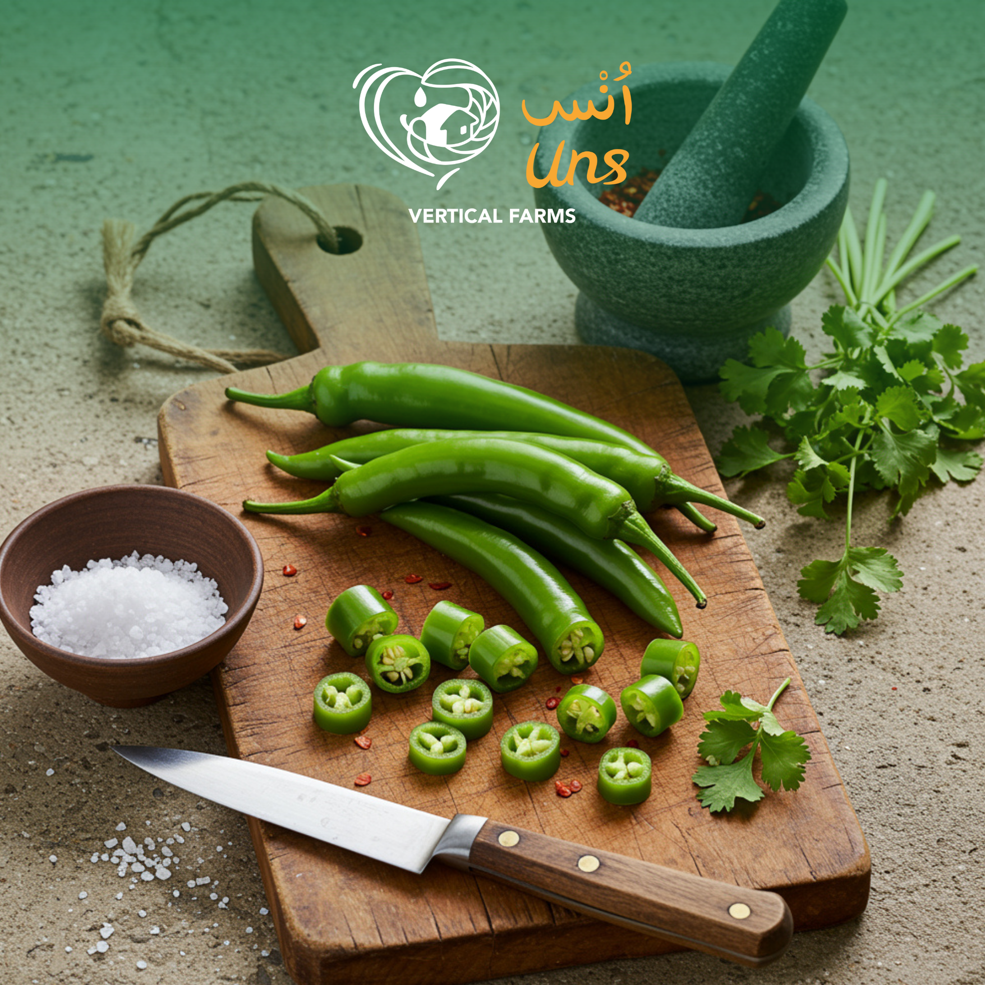 Firm Middle Eastern long green chillies with fresh, clean heat.