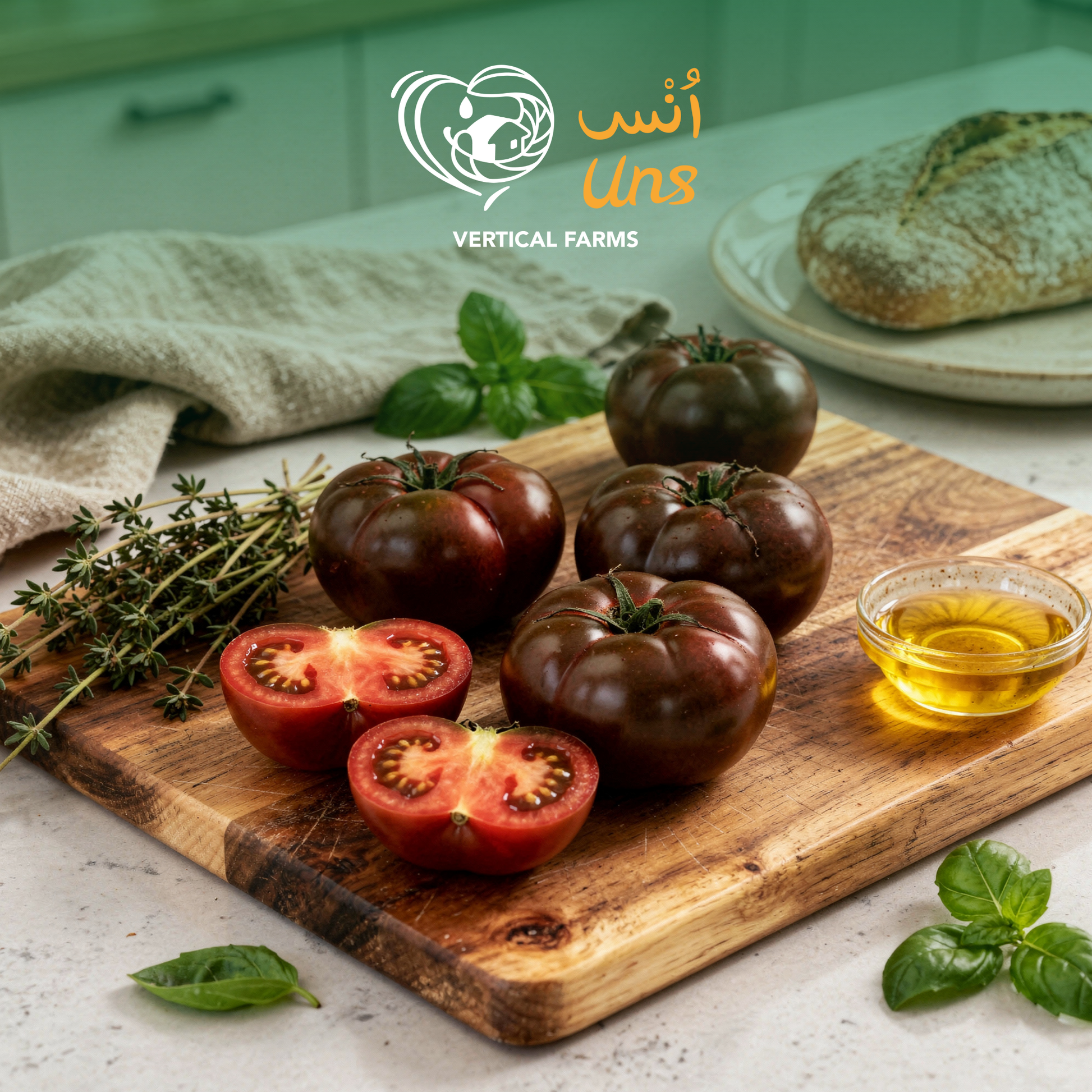 We use sustainable hydroponic vertical farming, which uses 90% less water, no soil, and ensures year-round production with low environmental impact.